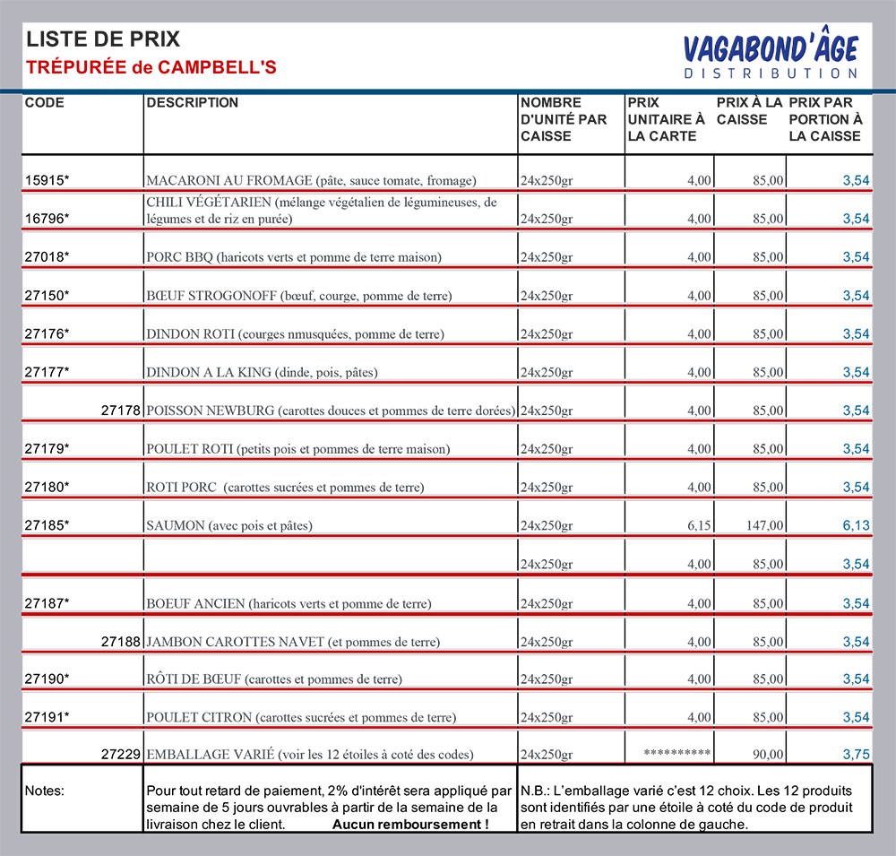 Nouvelle liste de prix juillet 2025 en ligne